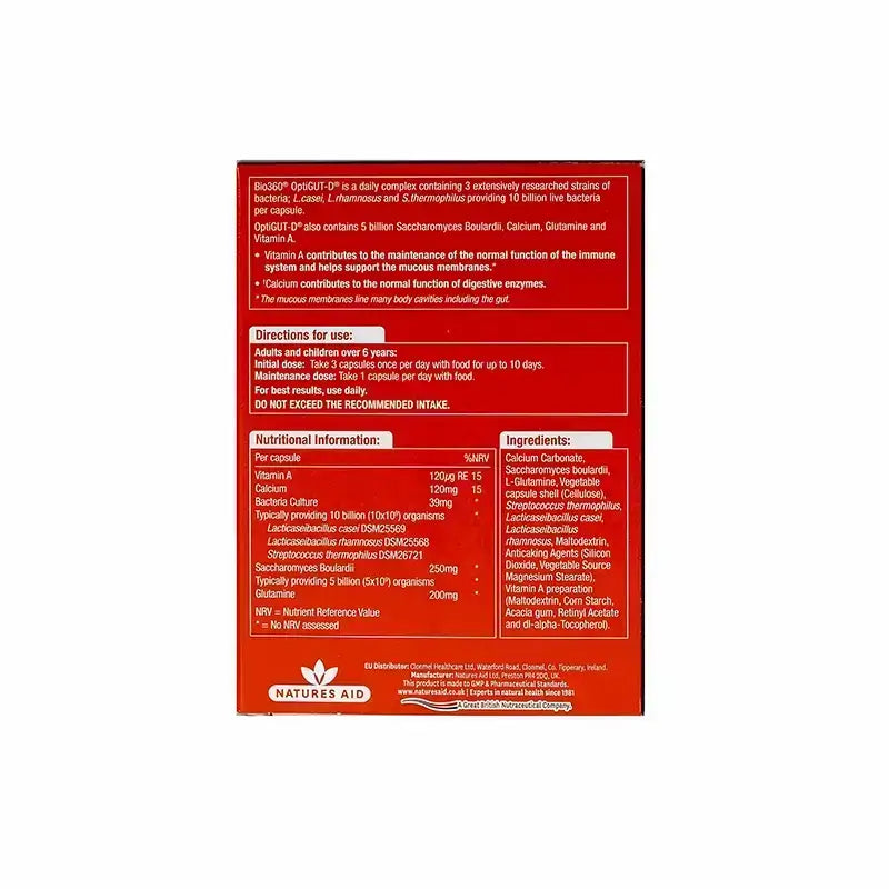 • تناول كبسولة واحدة من Bio 360 Optigut D لدعم عملية الهضم ثلاث مرات يوميًا لمدة 10 أيام.