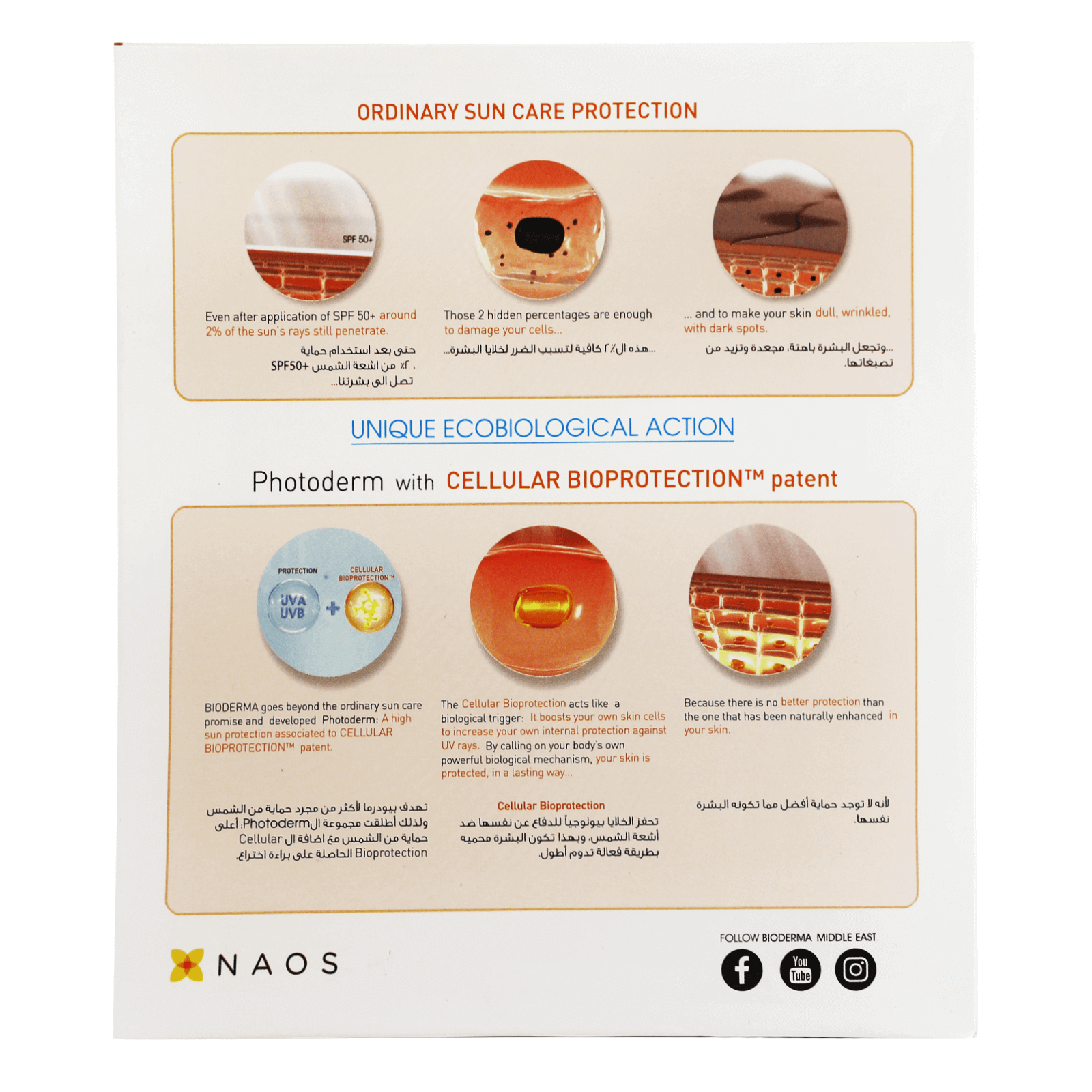 • Photoderm MAX offers optimized protection against UV rays (sunburn, sun allergies, etc.) combined with internal biological protection: the exclusive Cellular Bio protection Patent.