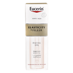 A face oil for mature skin Eucerin Facial Oil delivers multiple anti-aging benefits. The nourishing formula - which contains Milk Thistle Oil, Vitamin E and Argan Oil – improves elasticity, makes skin feel firmer, supports its natural resilience and smooths its surface. This comforting oil leaves skin with a satin-like finish.