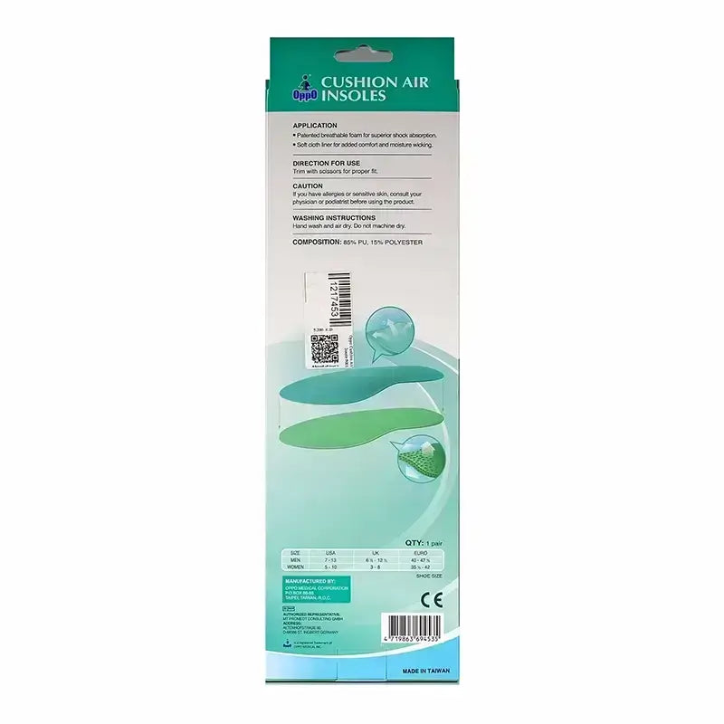 • استشر طبيبك أو أخصائي القدمين أولاً قبل استخدام بطانات الأقدام الهوائية Oppo Cushion Air إذا كنت تعاني من حساسية أو بشرة حساسة.