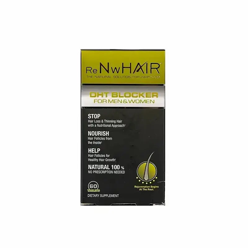 ري إن دبليو بلوكر دي اتش تي للشعر هو مكمل غذائي للرجال والنساء يساعد على تحسين كثافة الشعر.هرمون DHT هو هرمون جنسي مشتق من هرمون التستوستيرون، ويؤدي فرط هذا الهرمون إلى تلف بصيلات الشعر، مما يتسبب أيضاً في ترقق الشعر وتساقطه.