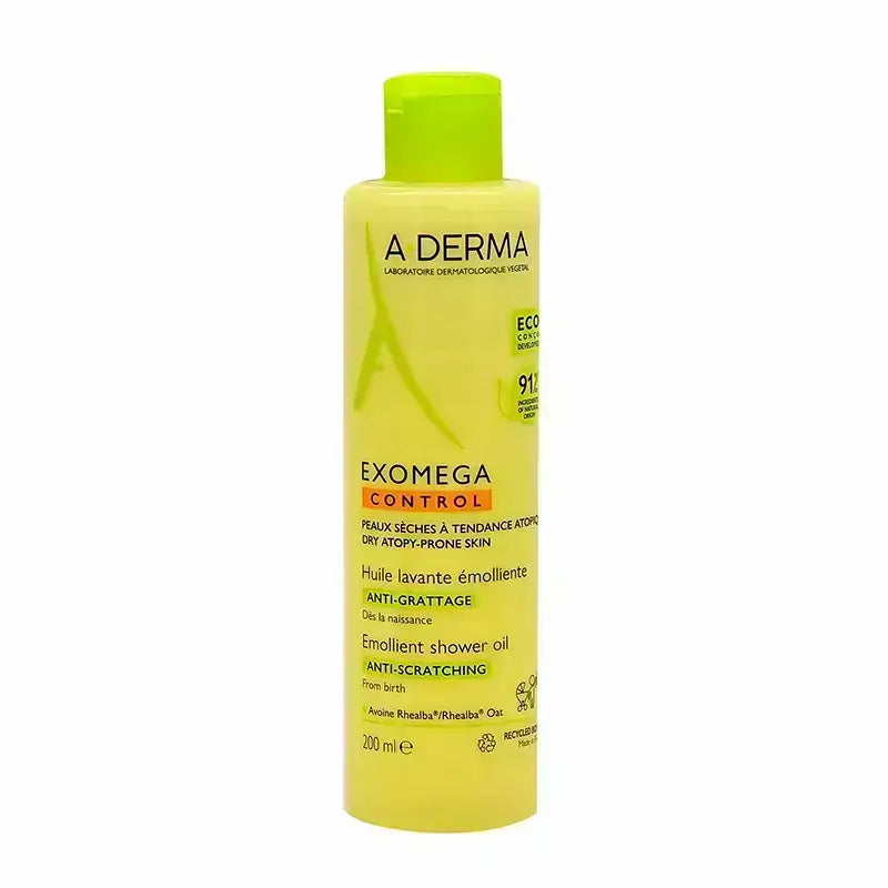 A-derma Exomega Shower Oil formula is 91% natural and contains skin-soothing oat extract.