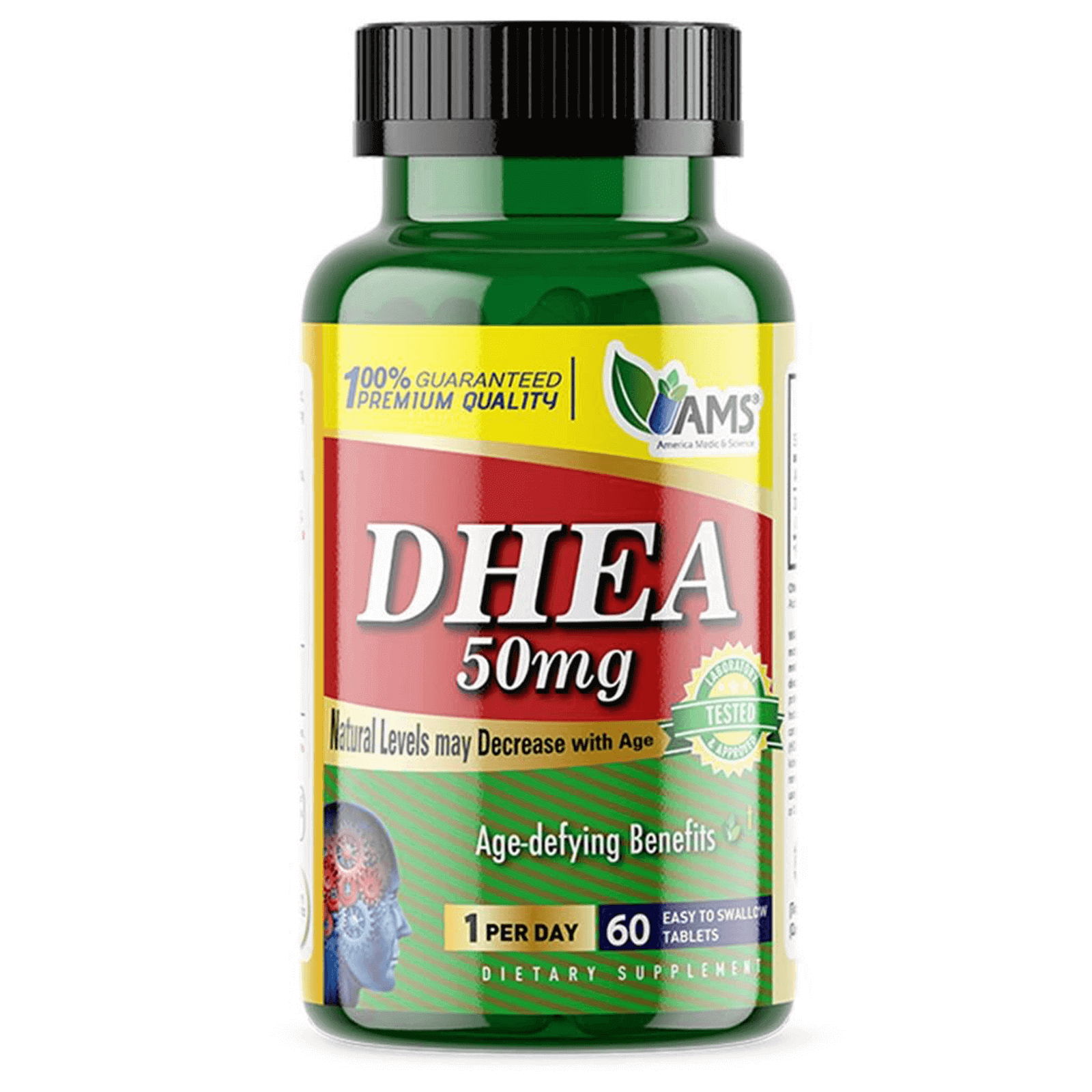Ams DHEA plays a vital role in increasing and regulating sex hormone levels such as testosterone and estrogen which decrease in the body with age besides providing the body with energy, As well as its role in maintaining healthy bones by increasing bone mineral and density.Active ingredients: