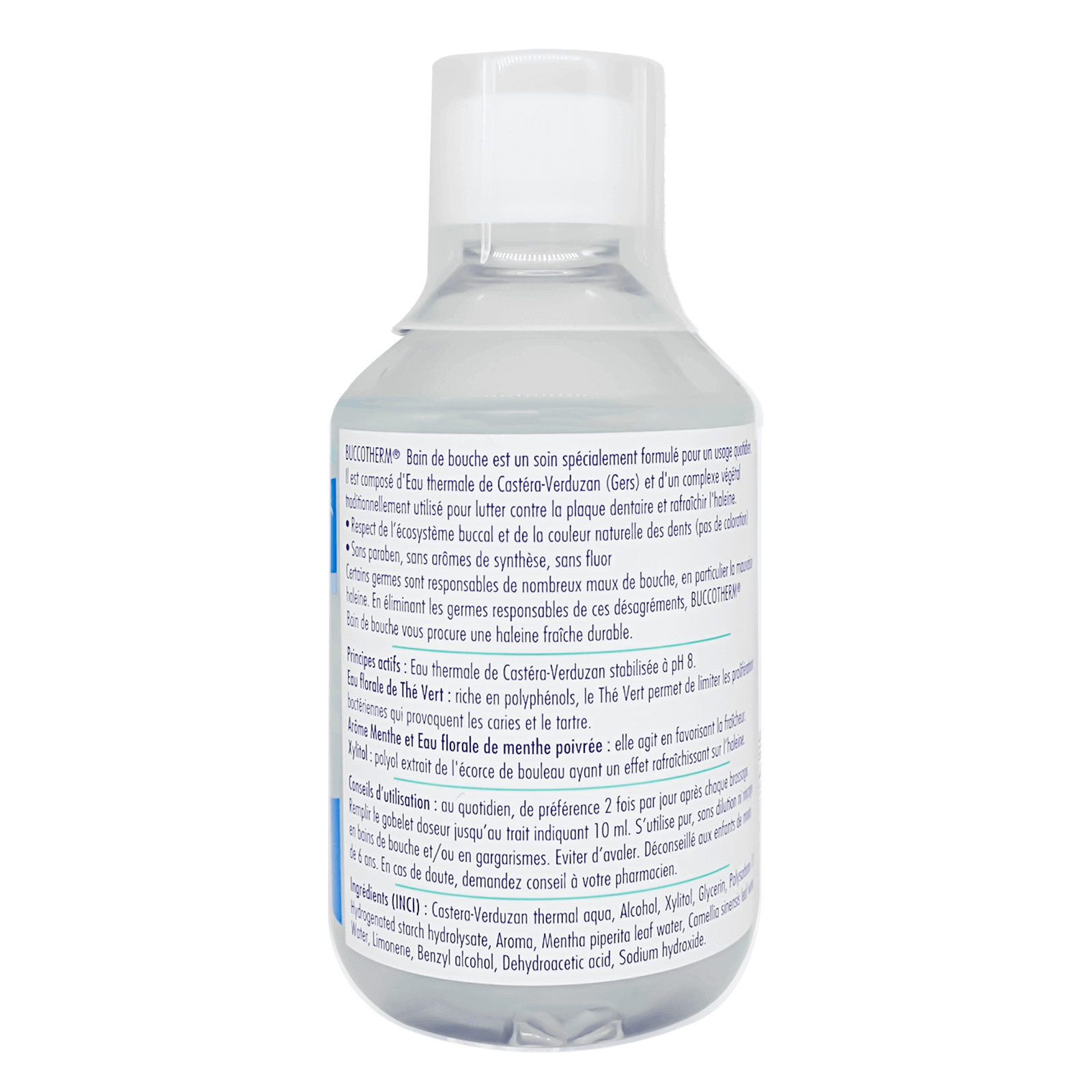 Buccotherm Mouthwash contains green tea that helps to limit the bacterial proliferation that creates caries.