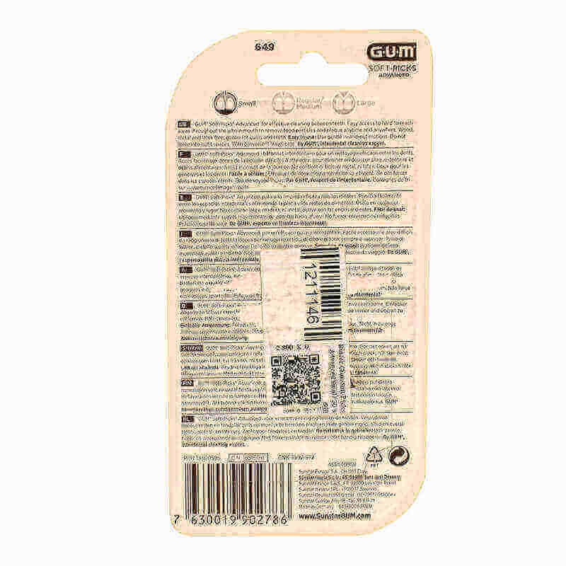 • Gum Soft Picks Advanced removes food residue and plaque between your teeth effectively.