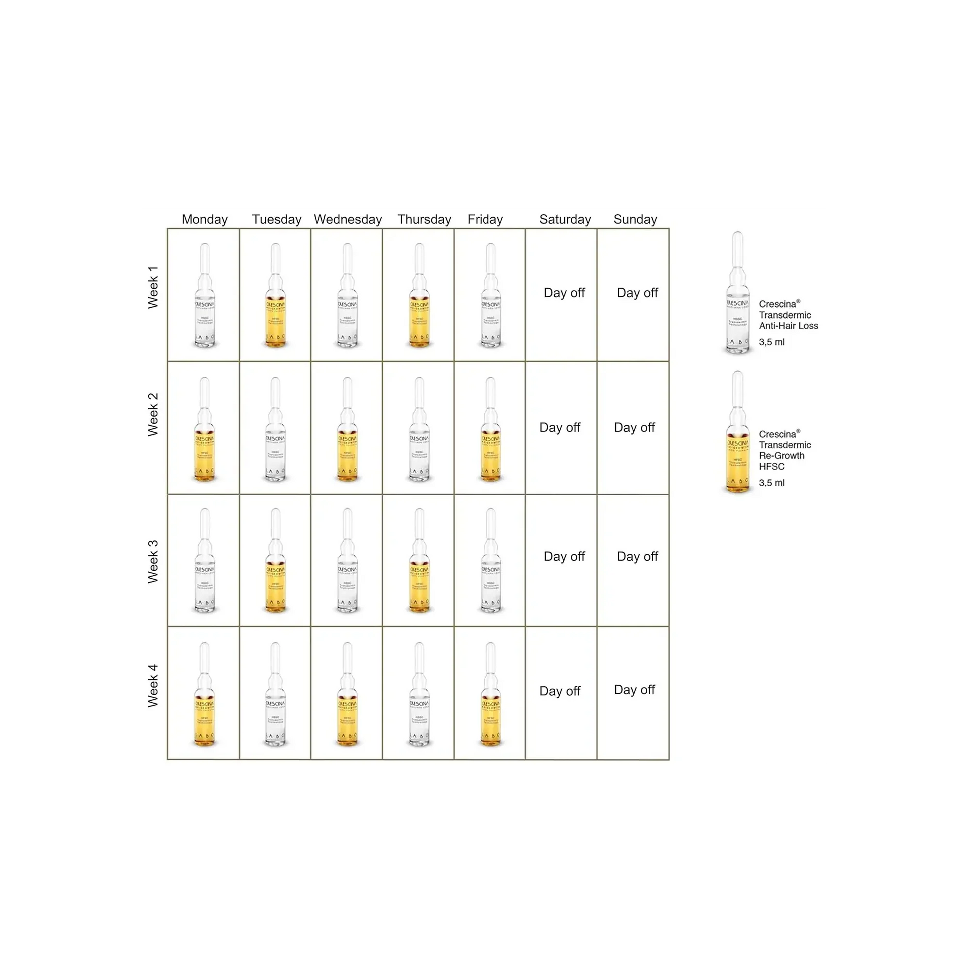 Crescina Transdermic ampoules are ampoules with a powerful formula and advanced technology that deliver the treatment to the hair follicles in the most effective way, ensuring clear results.The package contains two types of ampoules, one of which regrow hair and stimulate stem cells, while the second type treats hair loss, which increases hair density.