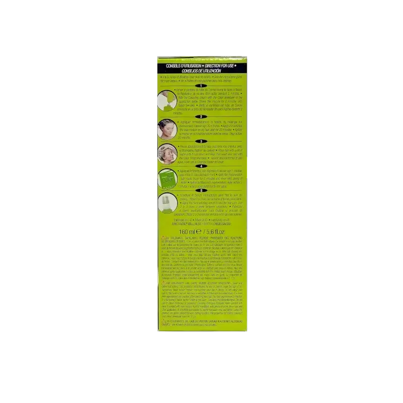 2- Color developer 60 ml: Contains hydrogen peroxide, which stimulates the oxidation process to lighten the natural pigment of hair (melanin) and achieve a Golden Blonde color