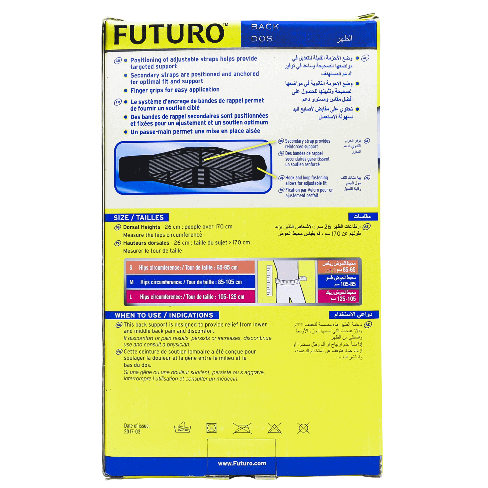 •Futuro Back Active Lumber Back Support Adjustable straps provide a personalized fit with suitable compression needs.