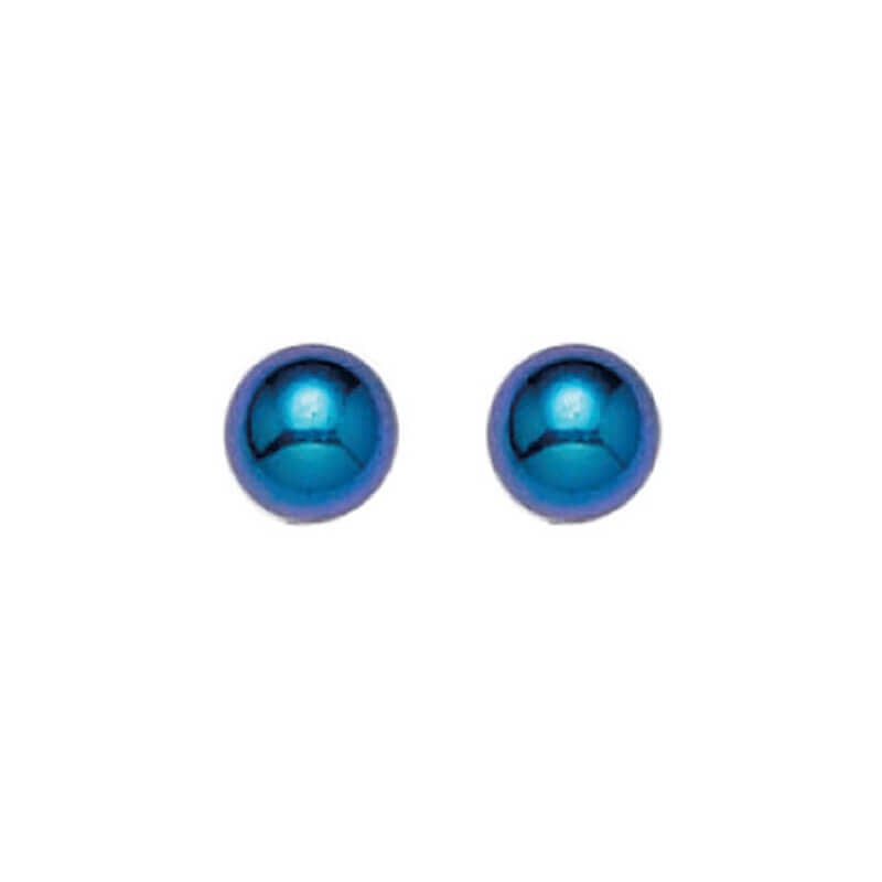 These classic, ball-shaped, blue, medical-grade titanium earrings will give you a vibrant look.