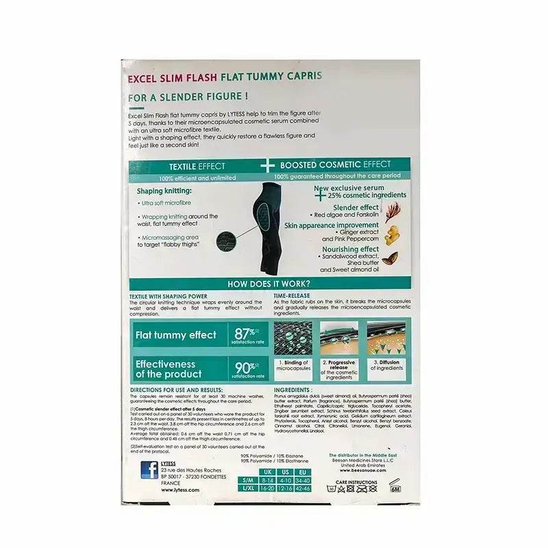 Lytess Flash Flat Tummy Capris wraps around the waist to provide a flat tummy effect without compression.The capris pants are specially designed to combine the effects of ultra-soft microfiber textiles and cosmetic herbal extract ingredients.