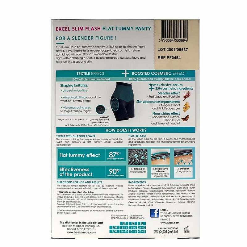 Lytess Flash Flat Tummy Panty wraps around the waist to provide a flat tummy effect without compression.The panty is specially designed to combine the effects of ultra-soft microfiber textiles and cosmetic herbal extract ingredients.