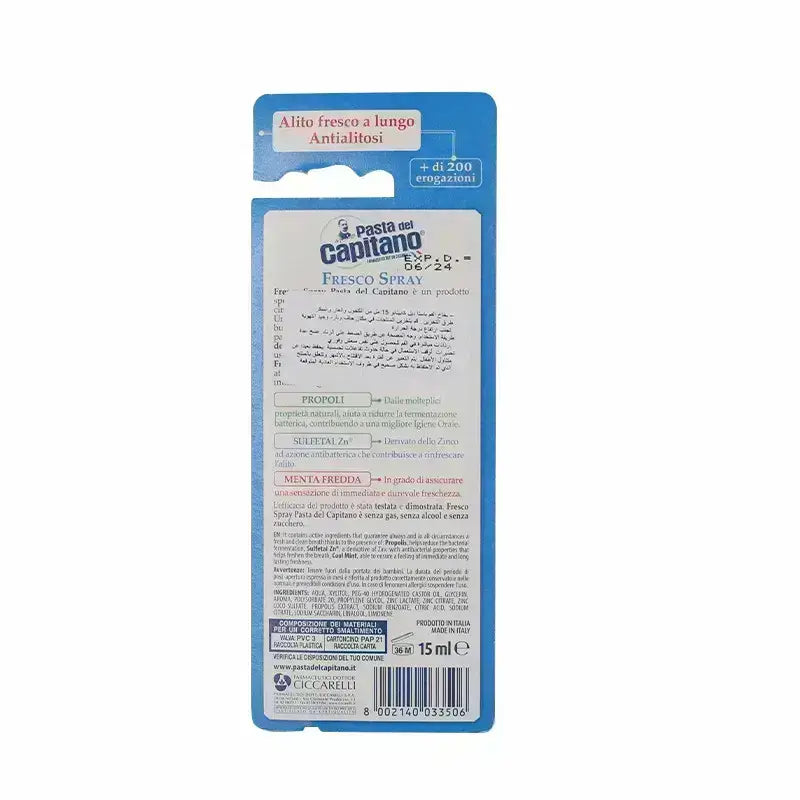 Pasta Del Capitano Mouth Spray Mint Flavor 15 ml Cap