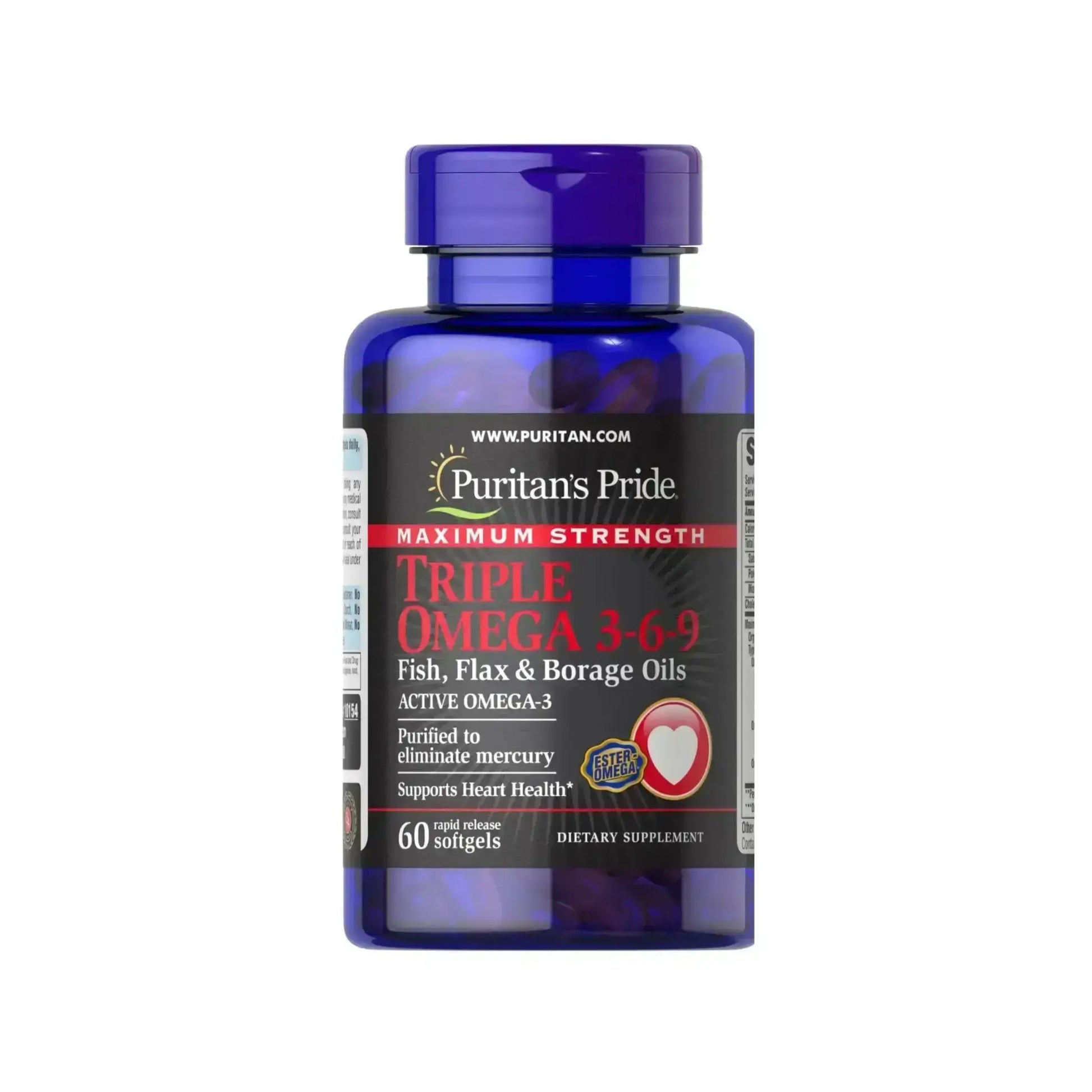 Puritan’s Pride Trible Omega 3, 6, 9 from fish, flax and borage oils which help support heart health and for healthy circulation.