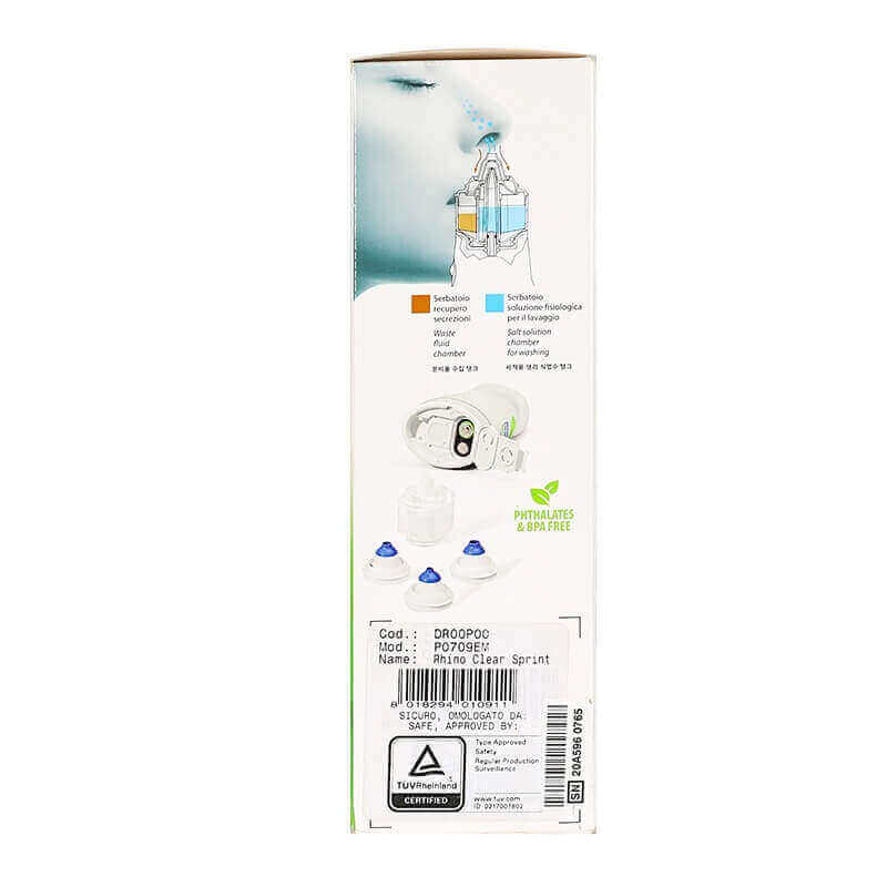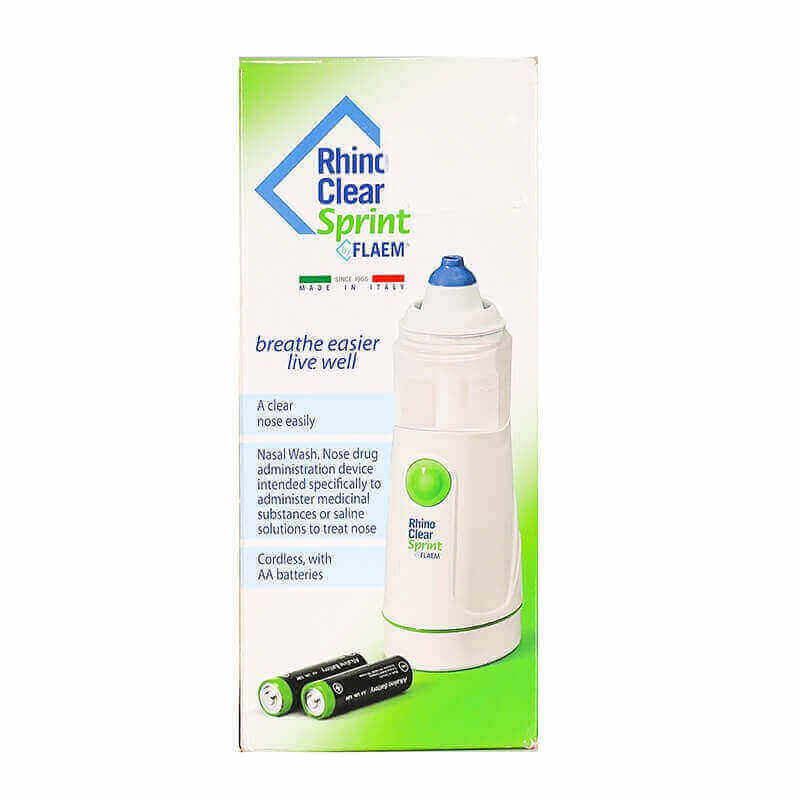Rhino Clear Sprint is a device designed to clean and treat nasal cavities using Normal saline solutions, as it turns them into a mist, which improves the breathing process.A nasal cleaner helps remove mucus, nasal secretions, and stuck-on dirt that makes breathing difficult.