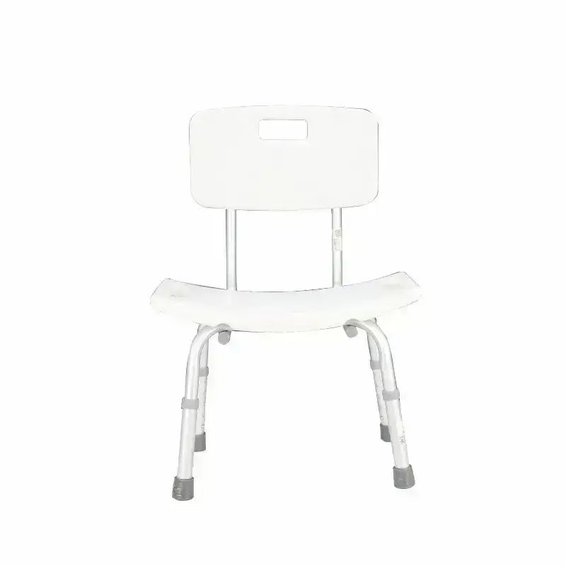 A shower chair with a back made of high-quality materials for the elderly and people with special needs.It consists of a soft plastic seat designed with holes to ventilate the body and drain water while taking a shower.