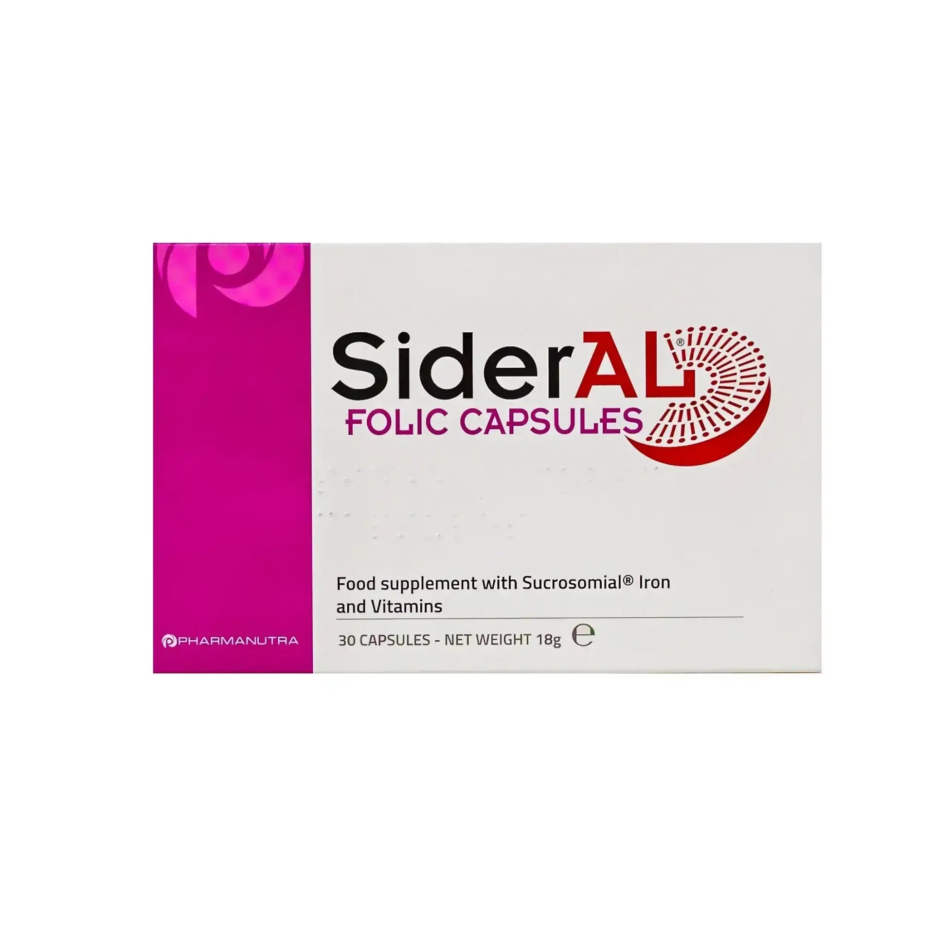 A dietary supplement in capsule form used to treat iron deficiency and maintain normal iron levels in the body.Formulated with Sucrosomial Iron, Folic acid, and a blend of essential vitamins, Sideral Folic ensures optimal absorption and efficacy, supporting overall health and well-being.T