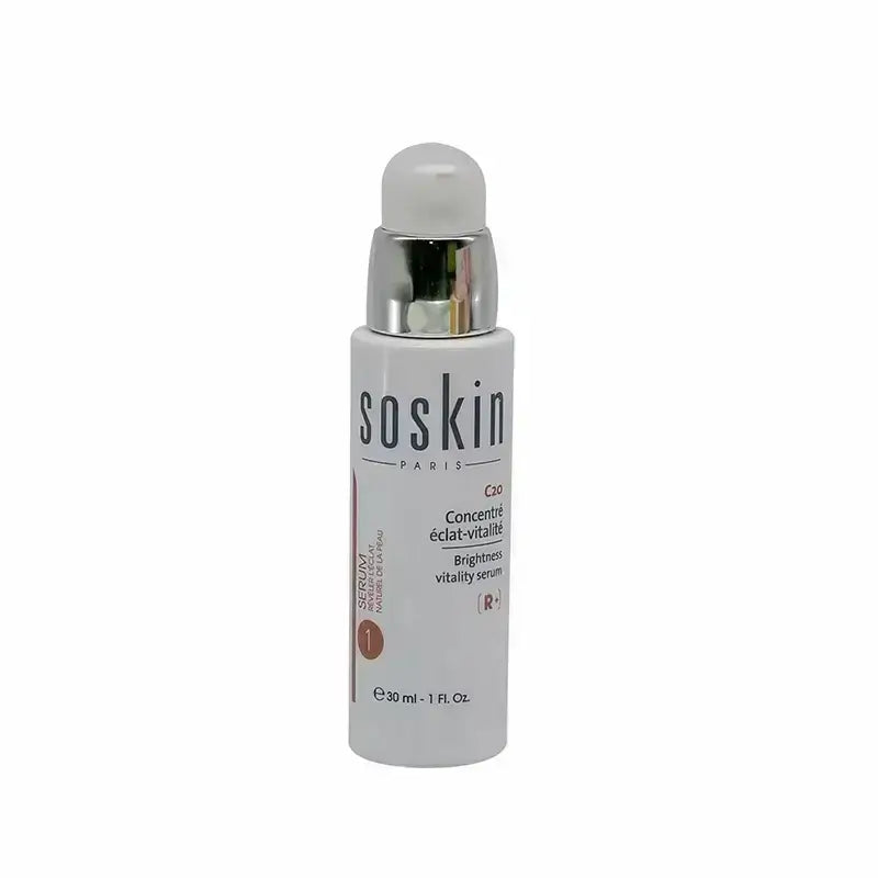 Soskin C20 Brightness Vitality Serum is a serum dedicated to brightening the skin and increasing its freshness and vitality.Vitamin C in the form of microcapsules inside the serum penetrates the layers and cells of the skin to restore the skin's lost shin.